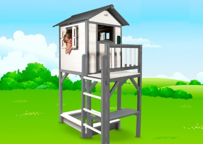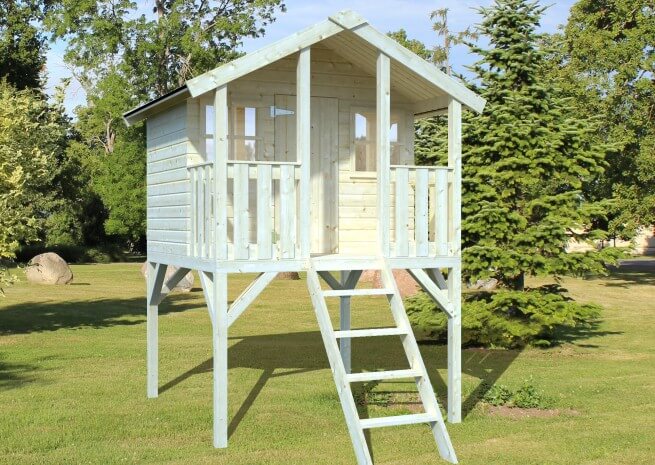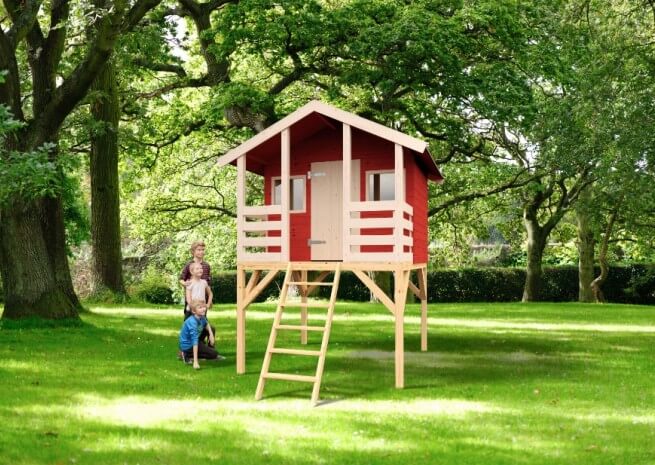 Das Spielhaus ist für jeden Garten ideal, weil es durch die Erhöhung nicht viel Platz in Anspruch nimmt.