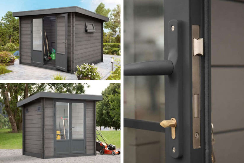 Die Aluminium Doppeltür sorgt für langen Schutz Ihrer Gartengeräte. Die Fenster sind einfach verglast und durch die gute Qualität der Türen müssen Sie sich keine Gedanken machen, wenn Sie mal mehrere Tage am Stück weg sind oder für längere Zeit in den Urlaub fahren. Ihre Gartengeräte stehen sicher, dennoch sollte das Fenster bei längerem Urlaub geschlossen werden.